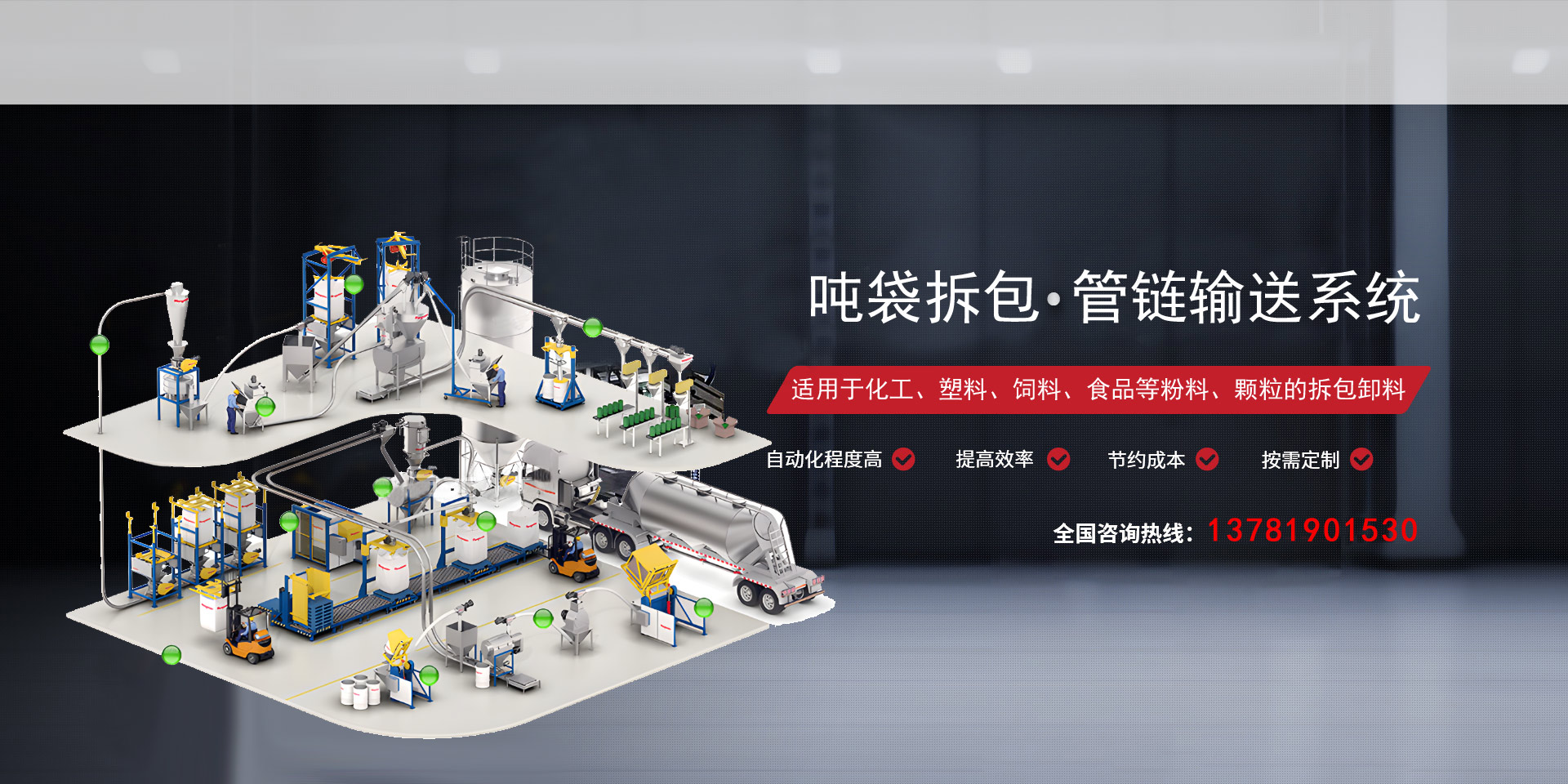 噸袋拆包機(jī)+管鏈輸送機(jī)投料到多個反應(yīng)釜方案噸袋破袋機(jī)為了防止開袋過程中粉塵飛揚對環(huán)境和物料的雙重影響,減少操作工人繁重的體力勞動,杜絕粉塵對操作者健康的影響,以自動化的開袋系統(tǒng)取代傳統(tǒng)人工開袋工作
